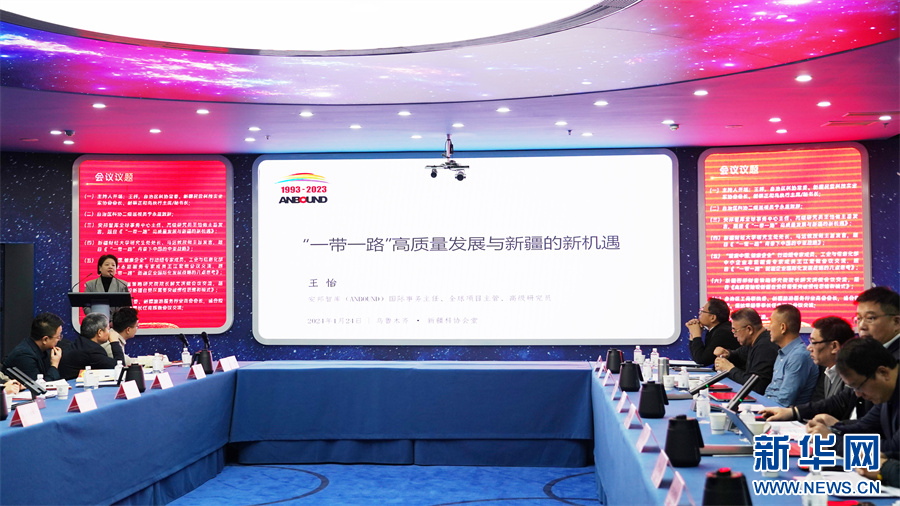 1月24日,“一带一路&新疆高质量发展”专题座谈会在乌鲁木齐召开。座谈会由安邦智库、新疆科学文化传播协会、新疆民营科技实业家协会和丝绸之路发展论坛秘书处联合举办,座谈会由新疆维吾尔自治区科协常委、新疆民营科技实业家协会会长王辉主持。