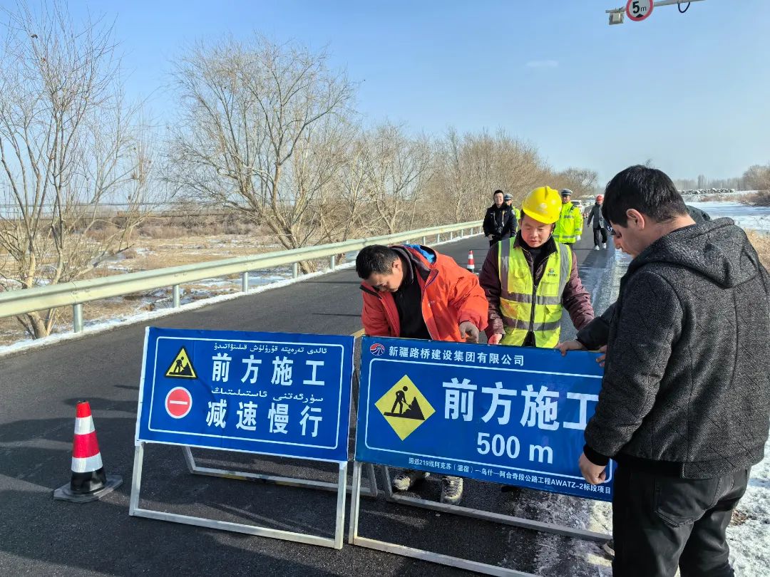 近日,项目属地乌什县亚曼苏柯尔克孜族乡因地震导致道路严重损坏,阿乌阿二标项目快速反应,听从指挥调配,在确保安全的前提下,全力配合阿克苏地区交通运输局开展地方道路抢险救援,与相关人员一道展开紧张有序的抗冰保安保通保畅工作,组织人员及相关机械设备紧急出动,清理路面障碍,设置安全警示标牌,恢复道路通行能力,全力保障救援队伍能够快速到达中心现场,历时两天完成150米道路修复工作。
