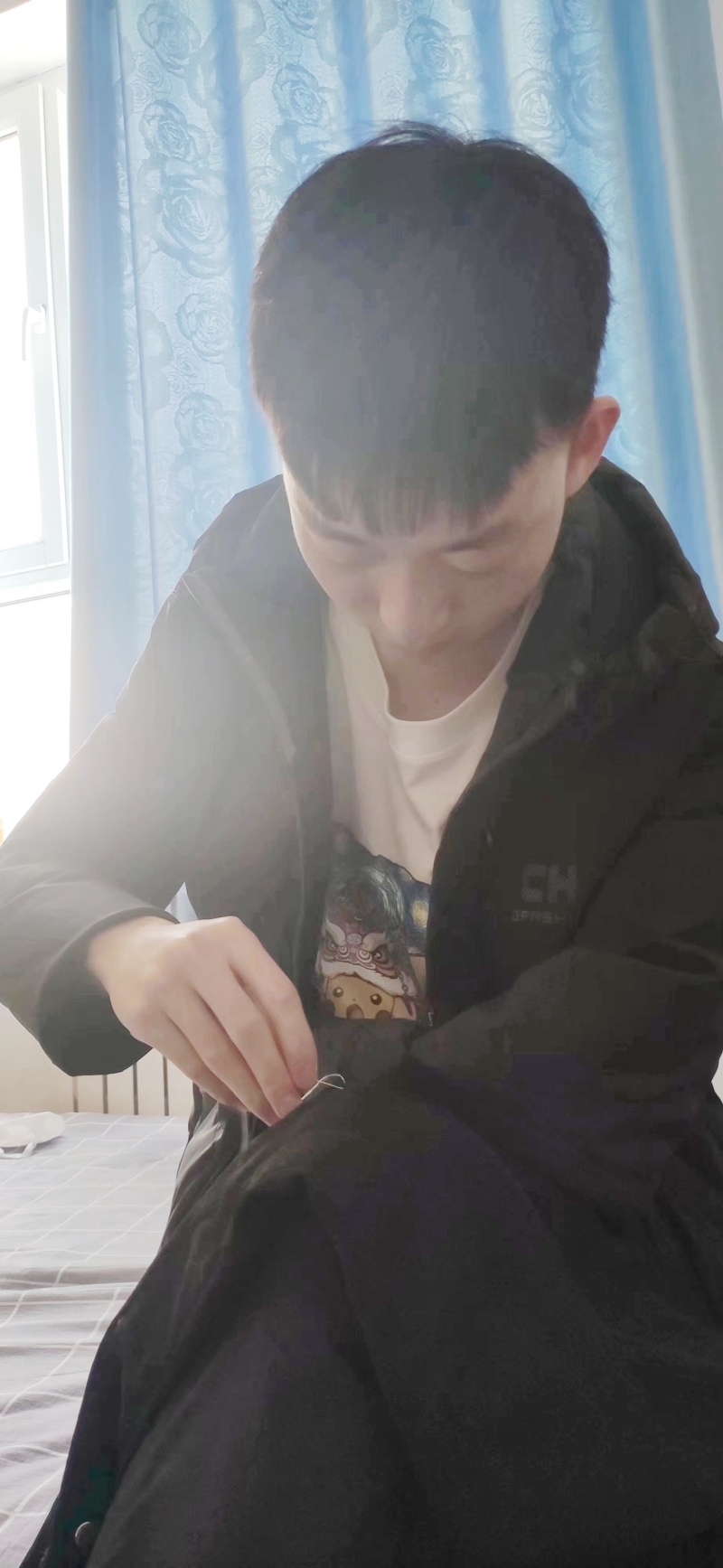 宋腾傲帮同事缝补裤子。图片由宋腾傲本人提供