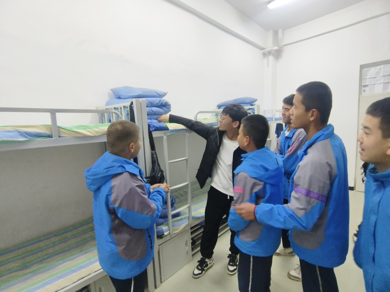 宋腾傲指导学生整理被褥。图片由宋腾傲本人提供