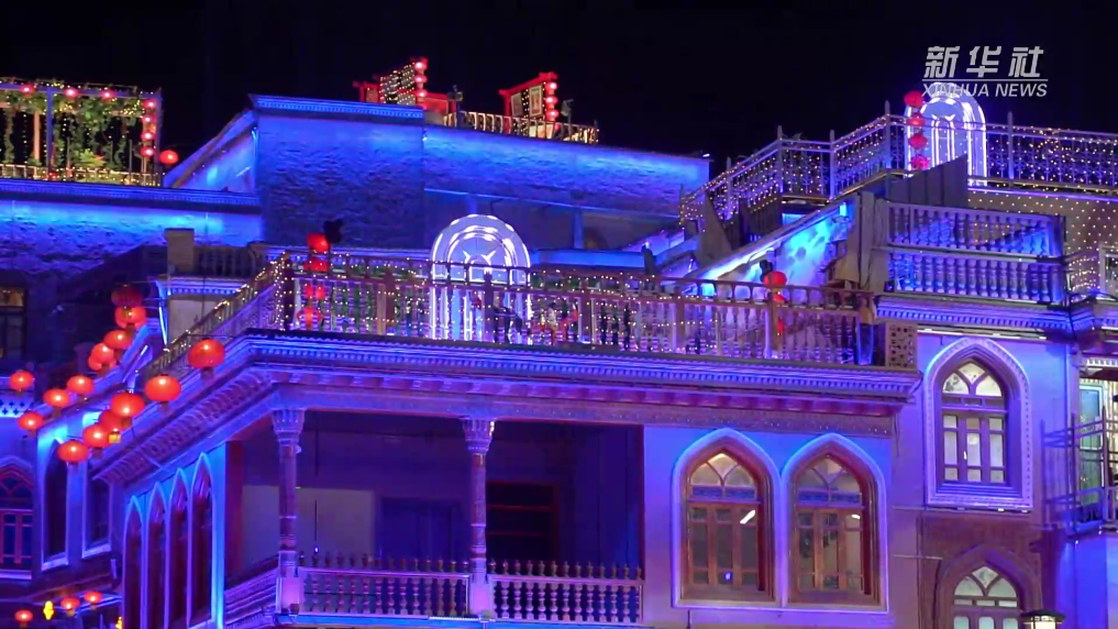 在光影与音乐配合下,在历史与现代的交融和鸣中,喀什古城流光溢彩。演员们用欢腾精湛的表演,向全国人民乃至全世界的华人展示了幸福、和谐的大美新疆。