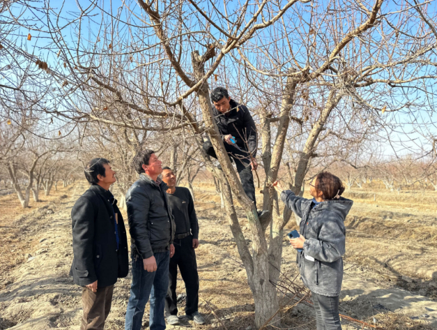 “春季修剪主要是调整结果枝与营养枝之间的比例,这种枝条要剪掉……”在轮台县阳霞镇其盖布拉克村村民热合曼·如孜的白杏园,县科技特派员艾拜杜拉·吾斯曼正在开展杏树修剪、管护技能培训。