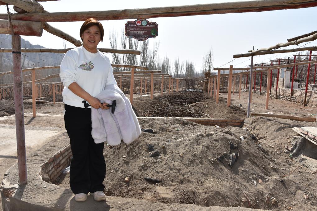 蒋晓艳在葡萄沟景区附近经营着一家民宿,她在活动现场得知可以认领葡萄树后,随即决定认领一颗“无核白”,“认领的时候我都不知道葡萄树在哪”。不过,见到自己认领的葡萄树后她很高兴,畅想着不久的将来,其民宿客人可以到这里边走边转,葡萄树边有两棵古桑树,“前面还有个800米葡萄长廊”。蒋晓艳认领的葡萄树也很快就要开墩。