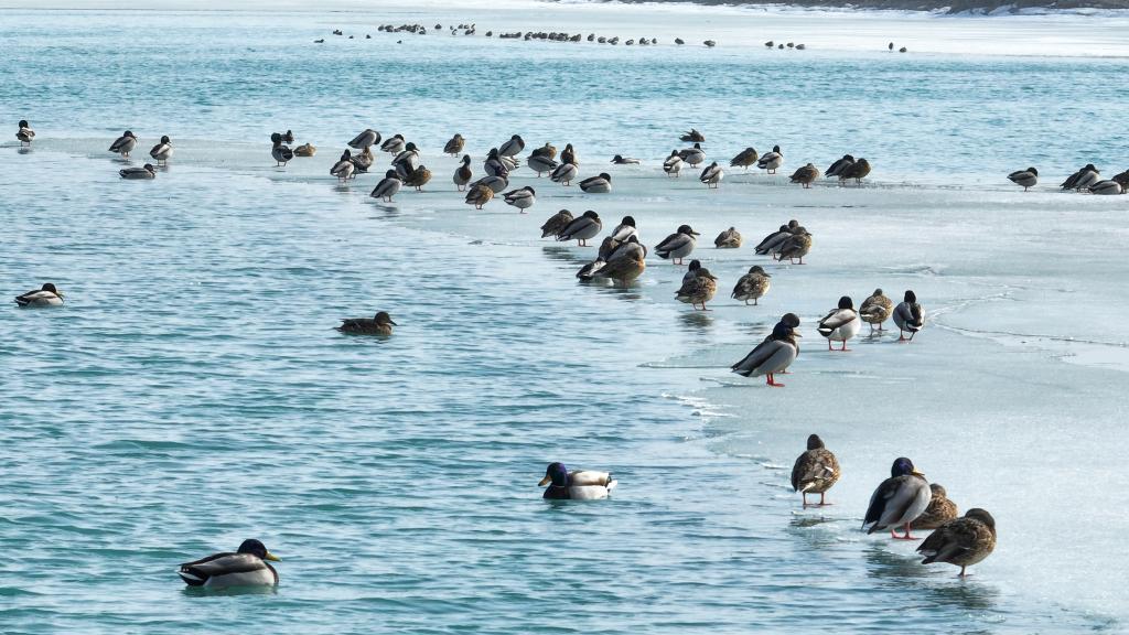 近日,随着气温的回升,位于新疆维吾尔自治区巴音郭楞蒙古自治州境内的开都河出现冰化开河景观。冰块分解成大小不一、形态各异的“冰排”奔流而下,半冰半河的景象与河水中嬉戏觅食的水鸟构成一幅生态画卷。