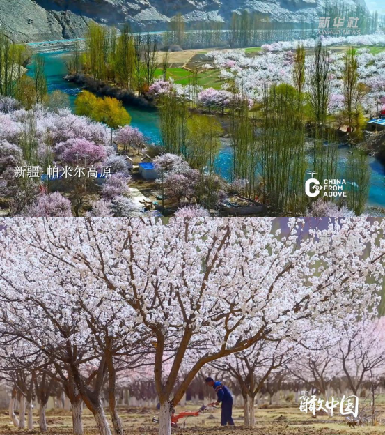 新疆帕米尔高原杏花林——杏花