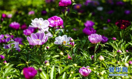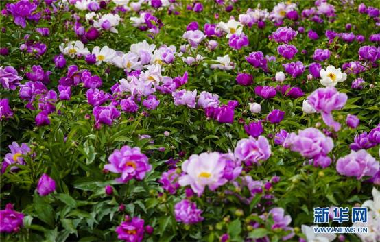 进入五月,新疆库尔勒市石化广场数十亩芍药绚丽绽放