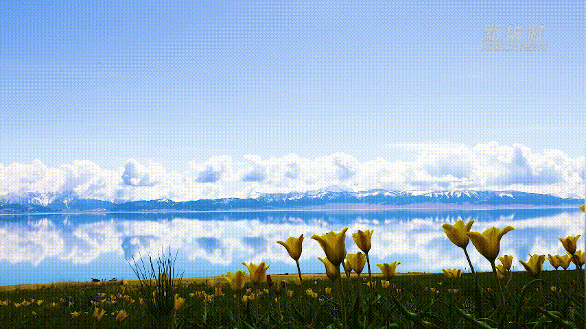 远远望去,赛里木湖宛若一片金色的海洋