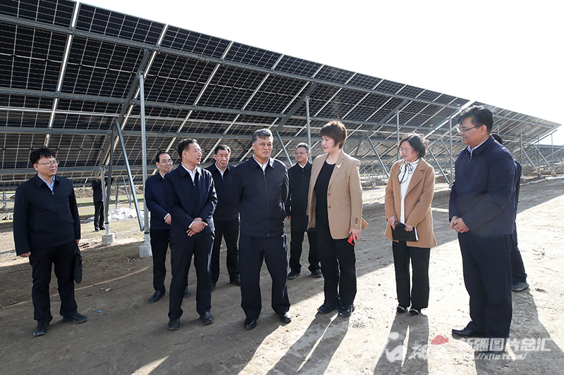 3月25日,自治区党委书记马兴瑞在中绿电尼勒克县400万千瓦风电光伏一体化项目现场,实地了解项目建设进展情况。石榴云/新疆日报记者 崔志坚摄