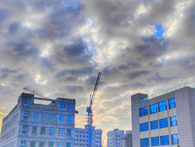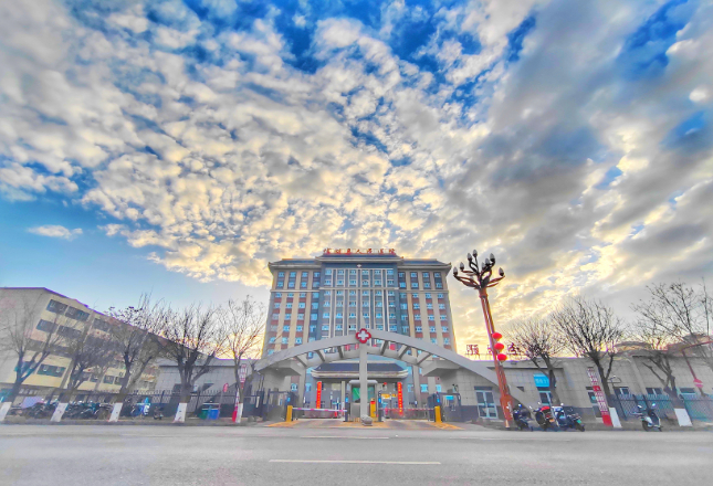3月24日10时13分,雨后清晨,博湖县人民医院大楼上空云朵飘荡。王陆斌 摄