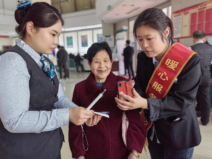 工作人员走进”社银“合作网点为居民进行养老待遇认证