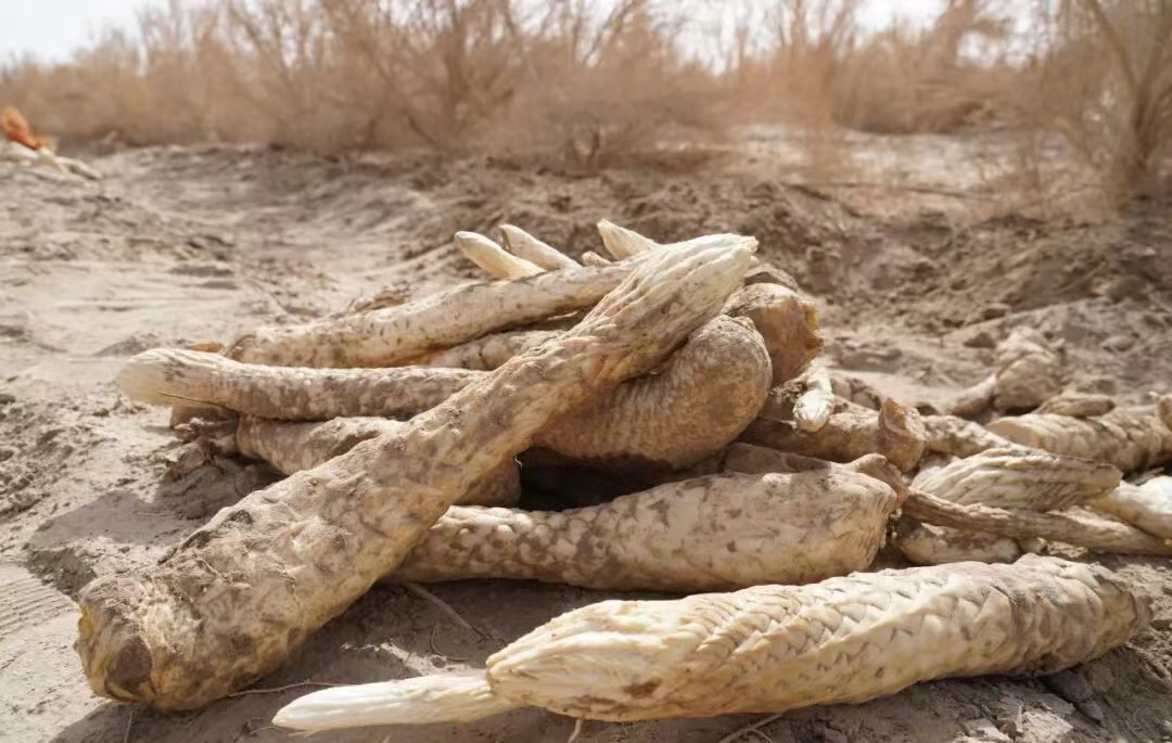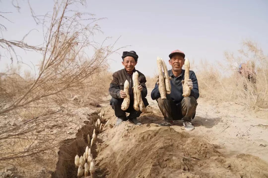 十一连职工阴崇良说:“在这务工离家近、很方便,我一天能挖200多公斤肉苁蓉,能挣500多元。”