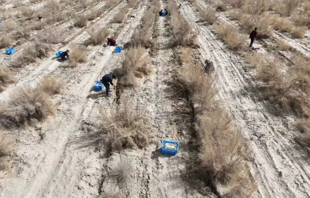 眼下正值肉苁蓉采挖的季节,近日,在二师三十四团十一连2000亩肉苁蓉收获现场,近百名工人正拿着铁锹穿梭在梭梭林地里,忙着采挖肉苁蓉,处处洋溢着丰收的喜悦。