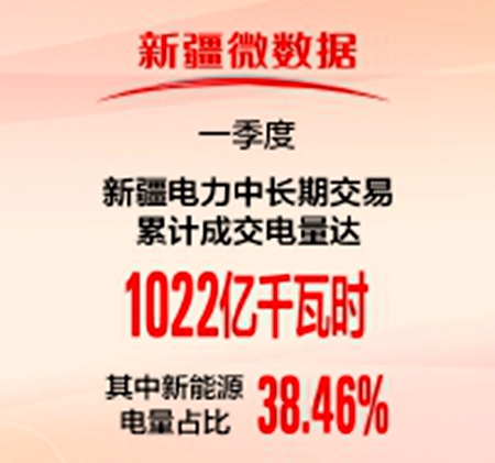3月27日,新疆电力交易市场月内合同交易顺利闭市。一季度,新疆电力中长期交易累计成交电量达1022亿千瓦时,其中新能源电量393.06亿千瓦时,占总交易电量的38.46%,同比提升23%。