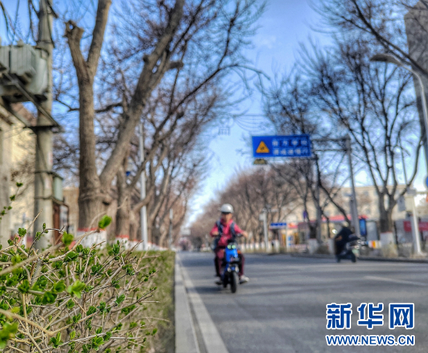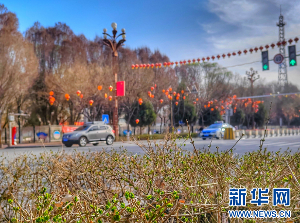 道路两旁花草新芽传递春的生机。王陆斌 摄