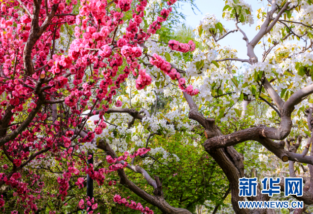 又一年暖春,梨花欲满城。春和景明,新疆库尔勒市的梨花、桃花、杏花、榆叶梅等次第开放。朵朵簇簇丛丛枝枝,阵阵清香沁人心脾,吸引游客打卡游玩。(通讯员 黄万里)