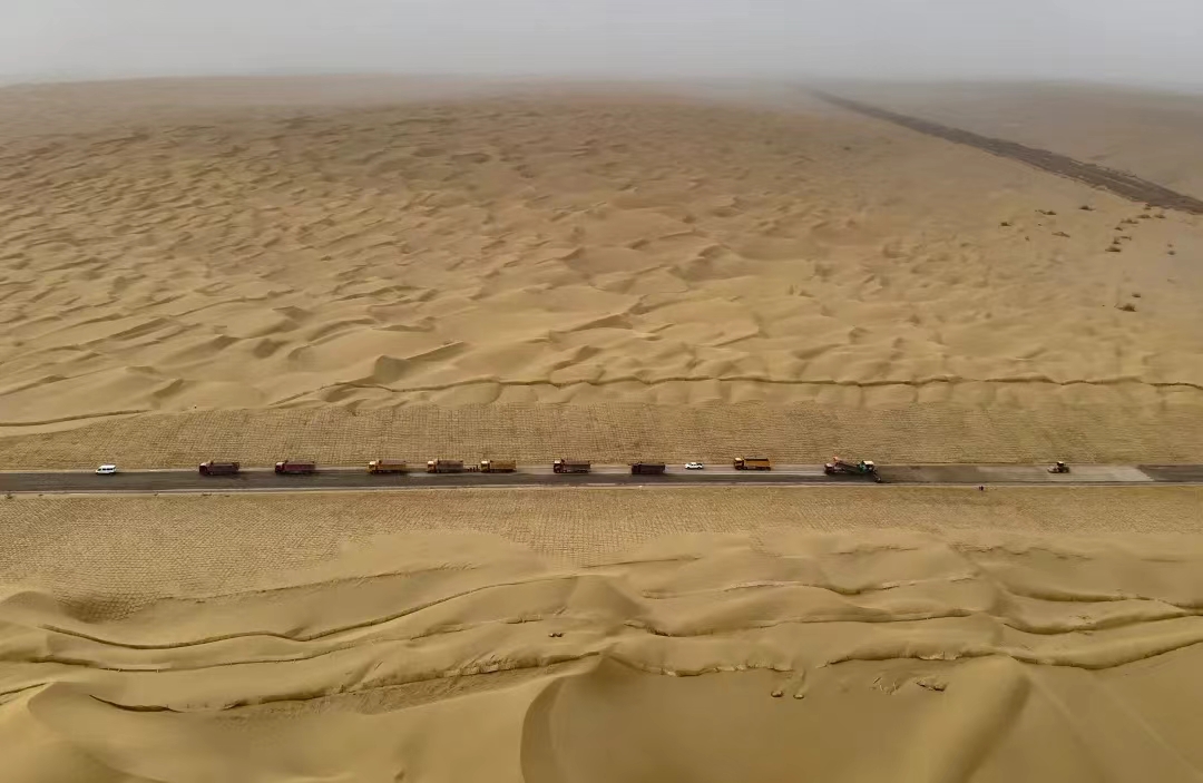 “沙漠里春天风大、夏天炎热、冬天寒冷,尤其是刮起风沙来,啥也看不见。”李国强说,公路刚开始建设的时候,一眼望去全是沙丘,推平一座又是一座,有时候刚刚推开一条路,一夜大风过后就又给埋上了。