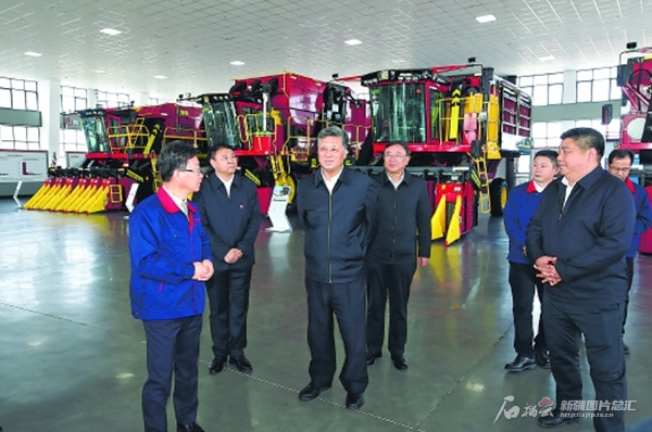 在凯赛生物,马兴瑞听取企业经营管理情况介绍,希望企业充分发挥新疆玉米种植优势和潜力,聚焦主业持续释放产能,加快向产业下游延伸布局,积极拓展国内和中亚国家市场。钵施然公司是新疆知名采棉机制造企业,产品占国内采棉机市场份额超四成。马兴瑞察看采棉机展示,走进车间了解装配和自动化生产情况,叮嘱企业巩固行业优势,加快关键技术突破,集中精力做大做强主业,立足新疆、辐射周边,更好助力新疆农业现代化和农民增收。乌苏啤酒近年来在国内的知名度和品牌影响力日益上升。马兴瑞考察企业生产车间运行和产品展示等,强调要保持高品质,拓展大市场,不断提升企业管理、产品研发、营销推广等现代化水平,持续提高企业品牌价值和市场竞争力。马兴瑞还考察了乌苏桑蚕茧丝绸全产业链项目建设现场,对依法依规推进项目建设、发挥助农带农作用等提出要求。