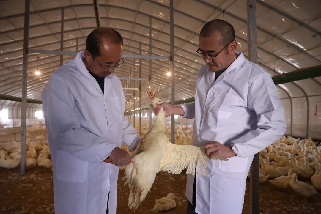 自2023年11月首批2万羽种鸭苗入驻以来,养殖技术人员和饲养员每天都要查看小鸭子的生长情况,并指导鸭舍饲养员开展日常工作。