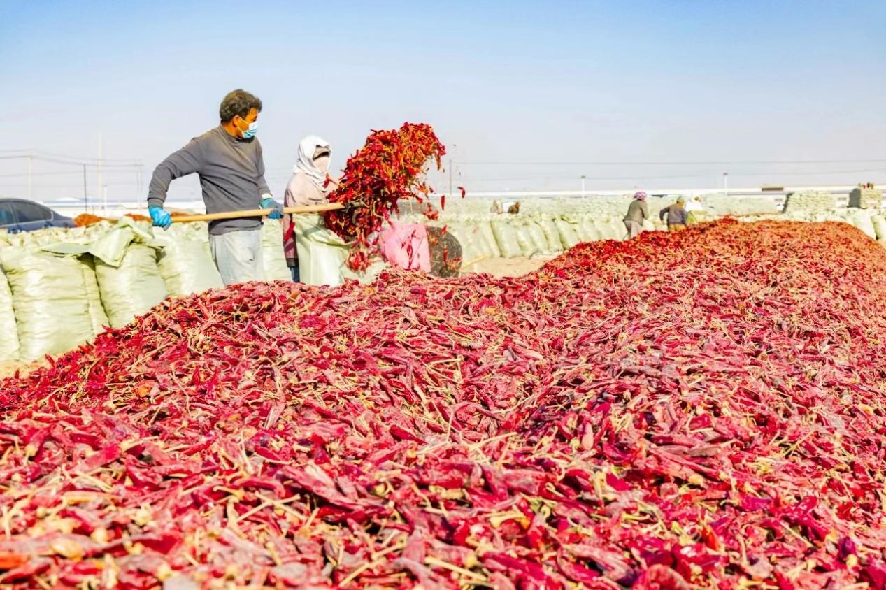 销路不愁,得益于二二三团党委聚力打造的辣椒产业园。产业引领发展,发展改善民生。2020年,二二三团被二师铁门关市纳入创建国家现代农业产业园团场,依托戈壁滩天然晾晒场资源优势、区位交通优势和农产品加工企业集群优势,主动抢抓机遇,深入贯彻新发展理念,坚持以供给侧结构性改革为主线,着力调整产业结构,找准自身优势和主导产业发展定位,精准推动辣椒科技化、产业化、集群化发展。该团党委组建专业招商团队,大力开展驻点招商、精准招商,以企引企、串点成线,不断延链补链强链;持续优化营商环境,加大辣椒产业园投资力度,一期投入基础建设资金2953万元,二期投资1500万元,不断完善农副产品加工产业园水、电、路、气等基础设施,提高园区承载企业的能力,为企业发展创造生产环境;组建专班服务招商引资企业,帮助企业办理前期手续,提供“保姆式”服务;及时兑现招商引资优惠政策,近三年为企业发放基础建设奖补资金等2370.9万元,确保招商企业招得来、留得住、发展好。