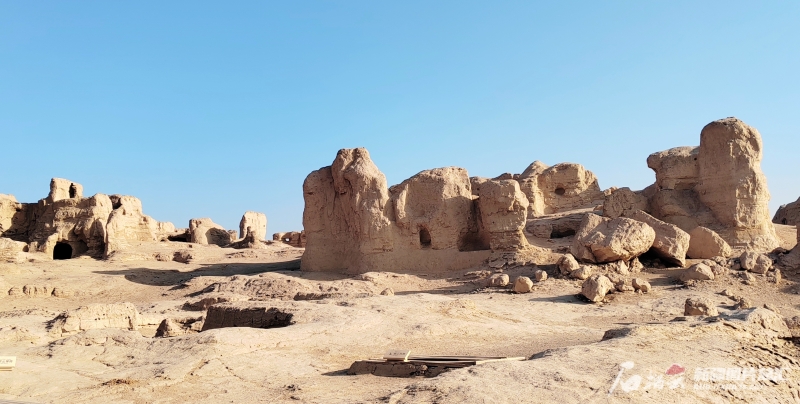 “白日登山望烽火,黄昏饮马傍交河。”唐代诗人李颀《古从军行》中的交河,位于吐鲁番市西约10公里的雅尔乃孜沟两河床之间的台地上。作为世界上保存最完整、延续时间最长、最古老的生土结构古代城市建筑群遗迹,交河故城是丝绸之路的交通要道,是中华五千多年文明史上的一个重要见证,有重要史学价值。2014年,交河故城作为中国、哈萨克斯坦和吉尔吉斯斯坦三国联合申遗项目“丝绸之路:长安-天山廊道的路网”中的一处遗址点,成功列入《世界遗产名录》。