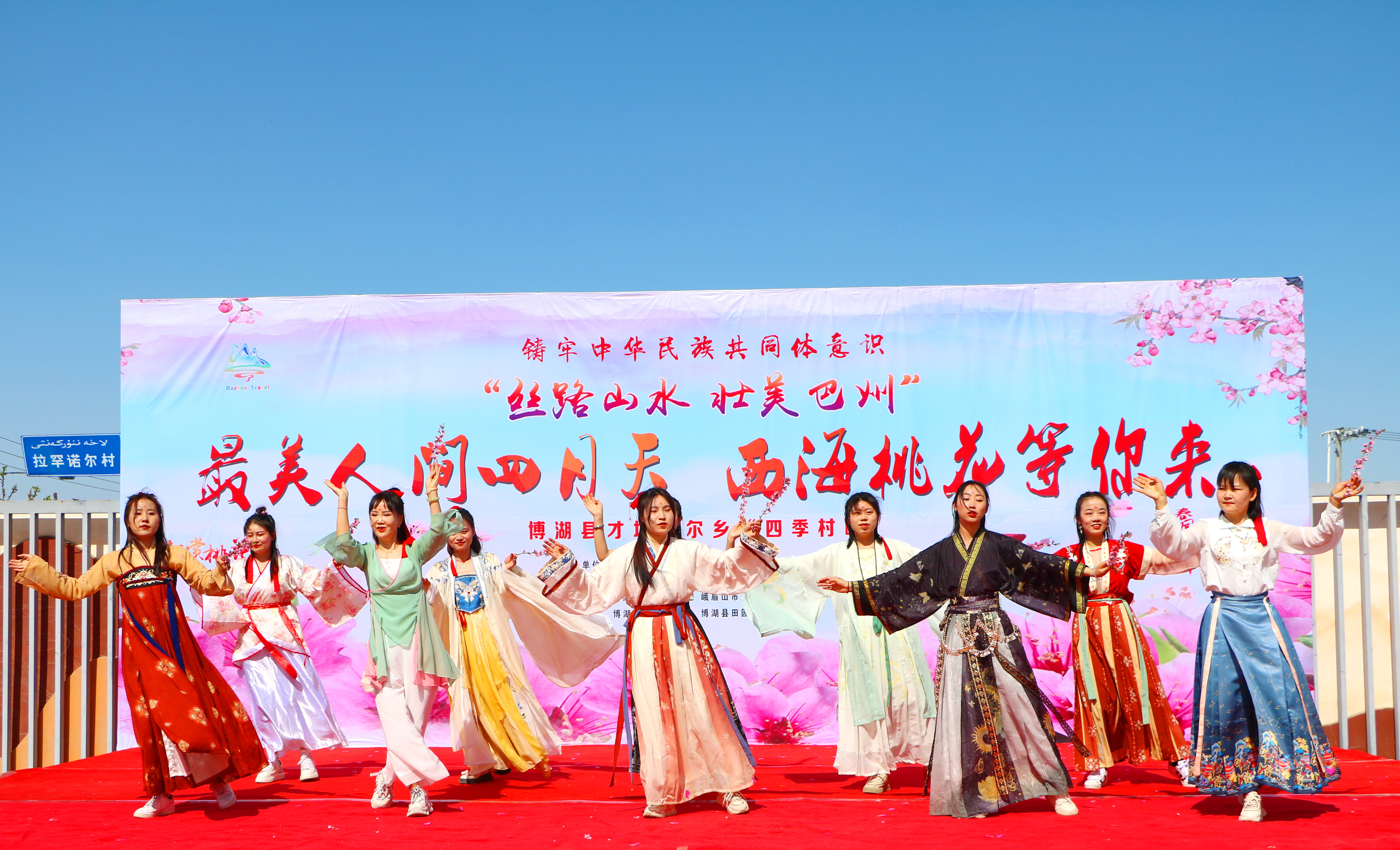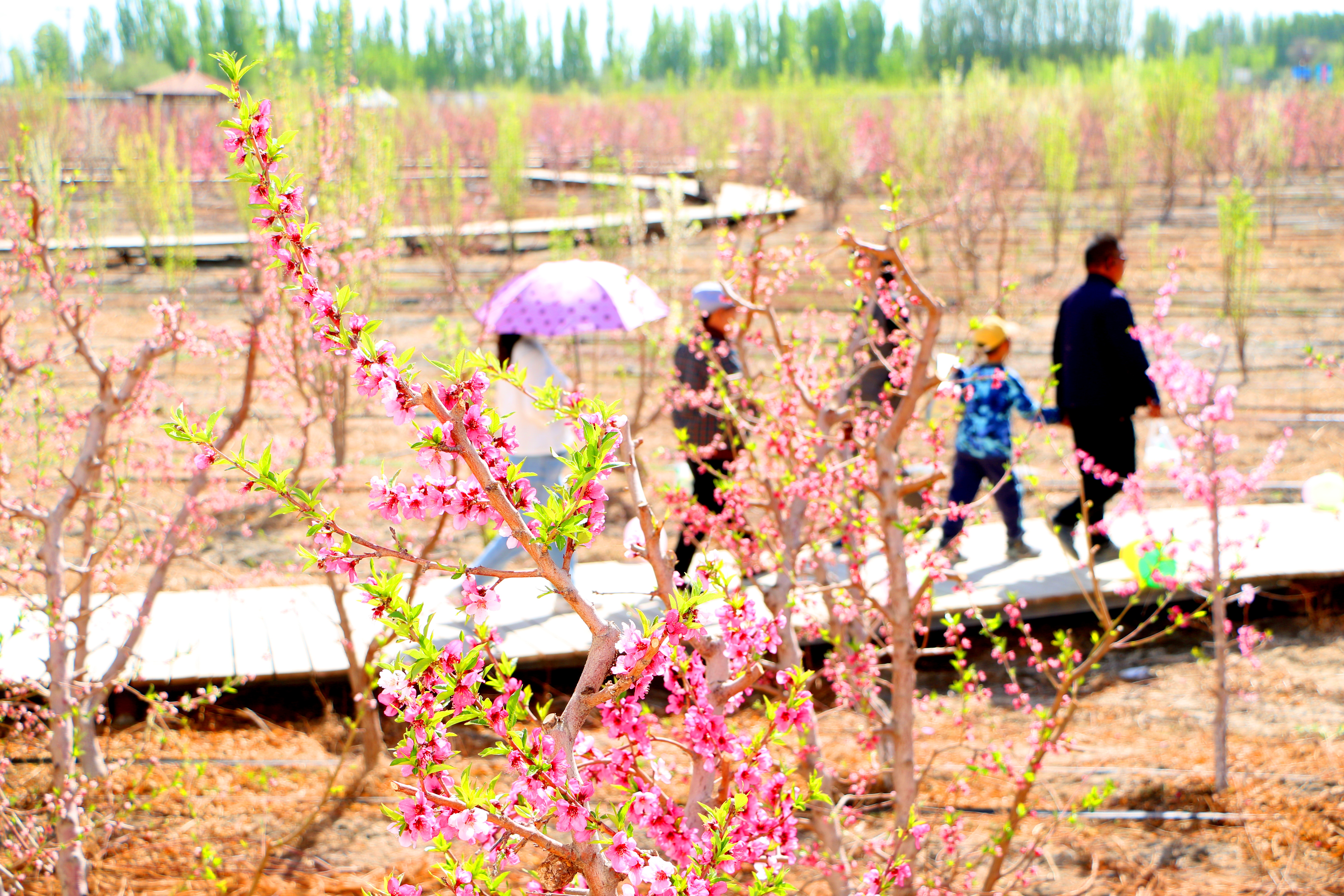 四月,春光灿烂,阳光明媚,新疆巴州博湖县才坎诺尔乡拉罕诺尔村的千亩桃花盛开,一桃一柳迎风绽放,扮靓了乡村田野,吸引了不少当地居民和游客前来“打卡”踏青赏花,漫步其中仿佛置身世外桃源,尽享春日美好时光。(王陆斌)