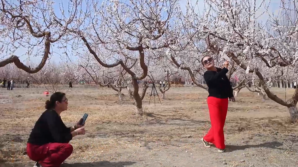 吐鲁番杏花盛开,吸引众多游客前来打卡拍照