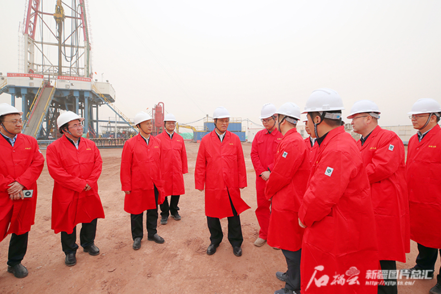 4月27日,自治区党委书记马兴瑞在新疆博源石油天然气开发有限公司柯坪北一区块综合利用项目二期工程现场,详细了解天然气勘探、试采情况。石榴云/新疆日报记者 崔志坚摄