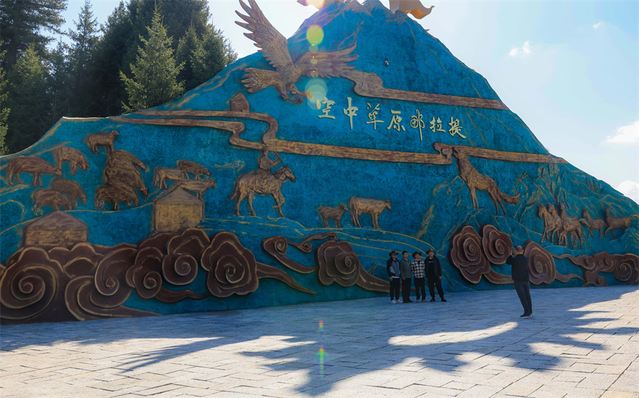 游客在那拉提景区打卡留念