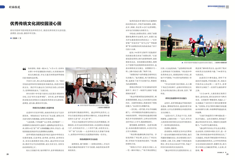 库车市第十中学是宁波市江北区惠贞书院库车分校,又名“库车市慈孝书院”。多年来,慈孝书院坚持采取灵活多样的方式推进优秀传统文化进校园、进课堂、进头脑,赓续中华文脉。