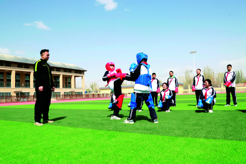 库车市慈孝书院散打社团学生在练习散打。吐尔松·托胡提/摄