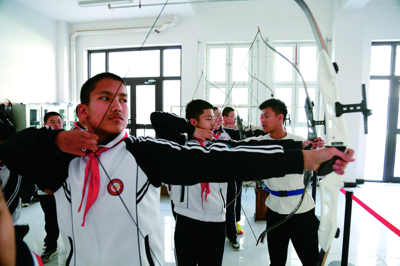 凝神屏息、挽弓搭箭……射箭社团课上,学生们在赵光鹏老师的指导下学习射箭,体验传统体育带来的快乐。