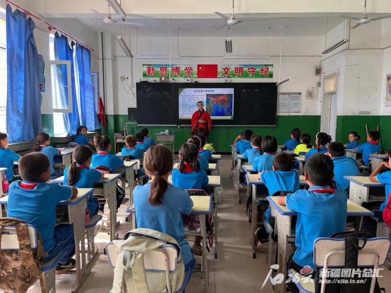 热孜瓦古丽为学生讲解文物故事,将历史文化送进校园。本人供图