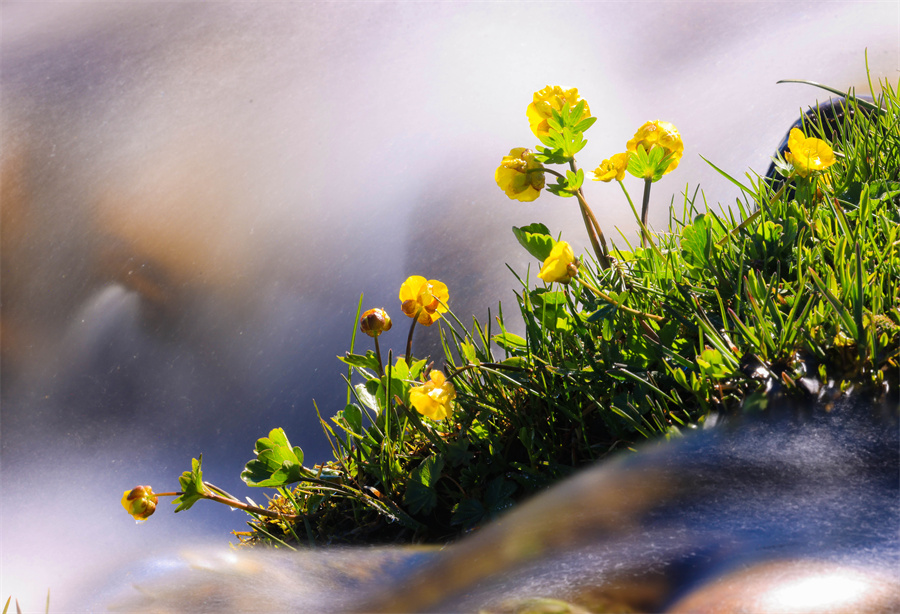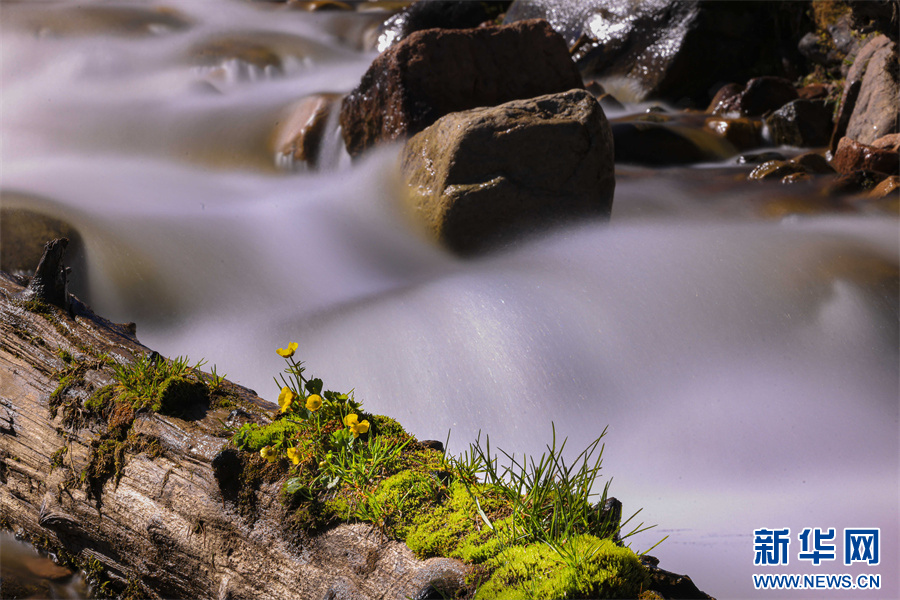 初夏,新疆新源县那拉提空中草原,绿草茵茵,黄色、白色、紫色等各色小花点缀其中,美不胜收。在空中草原,有一股由天山雪水融化形成的清澈小溪,沿着草原和松林中穿行而下。在溪水的滋润下,小溪旁的野花茁壮生长,在相机慢门的拍摄下,流动的溪水或如云雾般缥缈,或如丝绸般顺滑,与岸边花朵相映成趣,这些景象或宁静唯美,让人如痴如醉,或震撼人心,富有冲击力,犹如仙境,意境绵长,妙不可言,美得让人留连忘返。