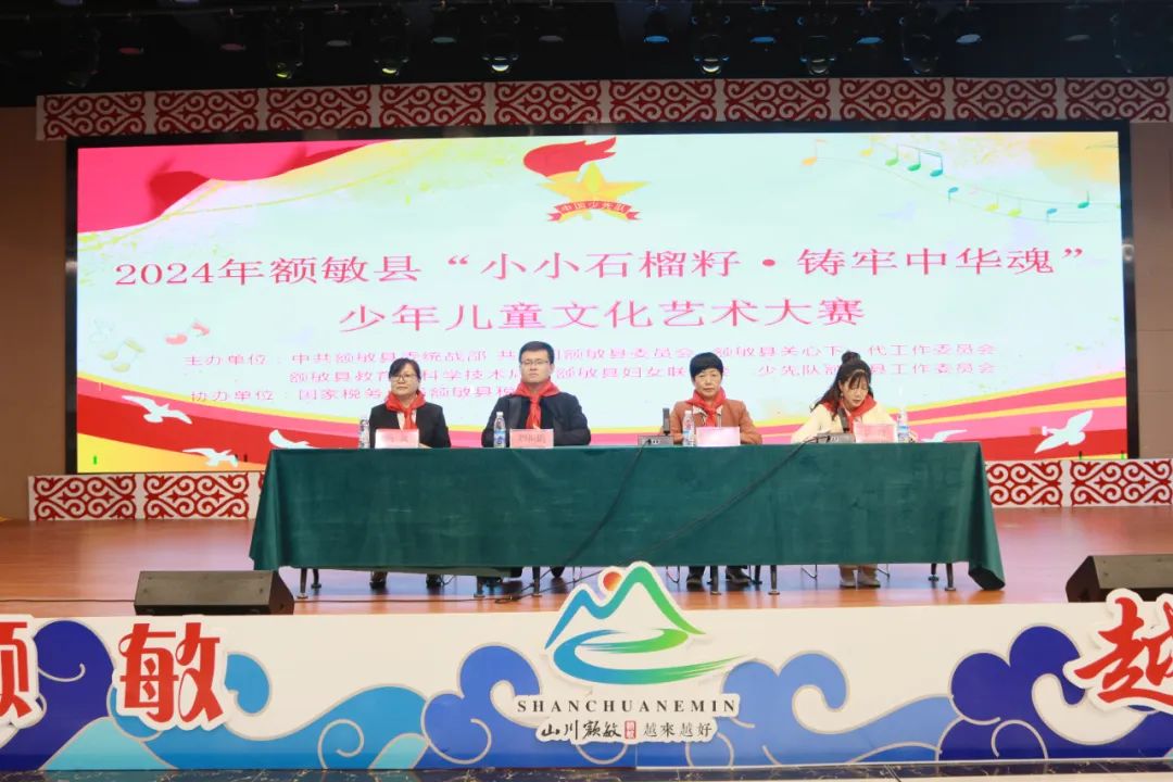 在六一儿童节来临之际,5月22日,由额敏县团委、统战部、教科局、关工委、妇联、少工委联合主办,国家税务总局额敏县分局协办的额敏县第42个民族团结进步教育月“小小石榴籽·铸牢中华魂”少年儿童文化艺术大赛开幕。本次大赛共设声乐、器乐,舞蹈、语言表演、美术类等五大类别,按年龄分儿童组、少年组。声乐、器乐、舞蹈、语言表演共计48个节目,99名参赛选手。美术类共展出绘画作品144幅(儿童作品119幅、少年作品25幅),书法作品76幅。