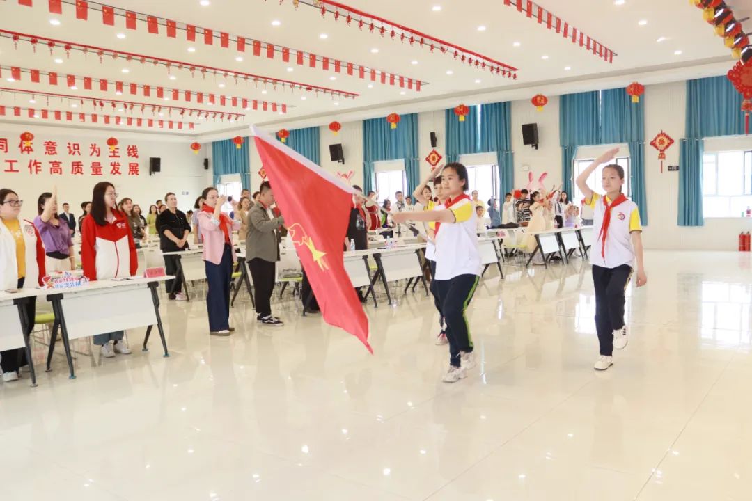 活动伊始,少先队员为参会代表佩戴上了鲜艳的红领巾,举办开幕式,进行了出退旗,唱队歌等环节。