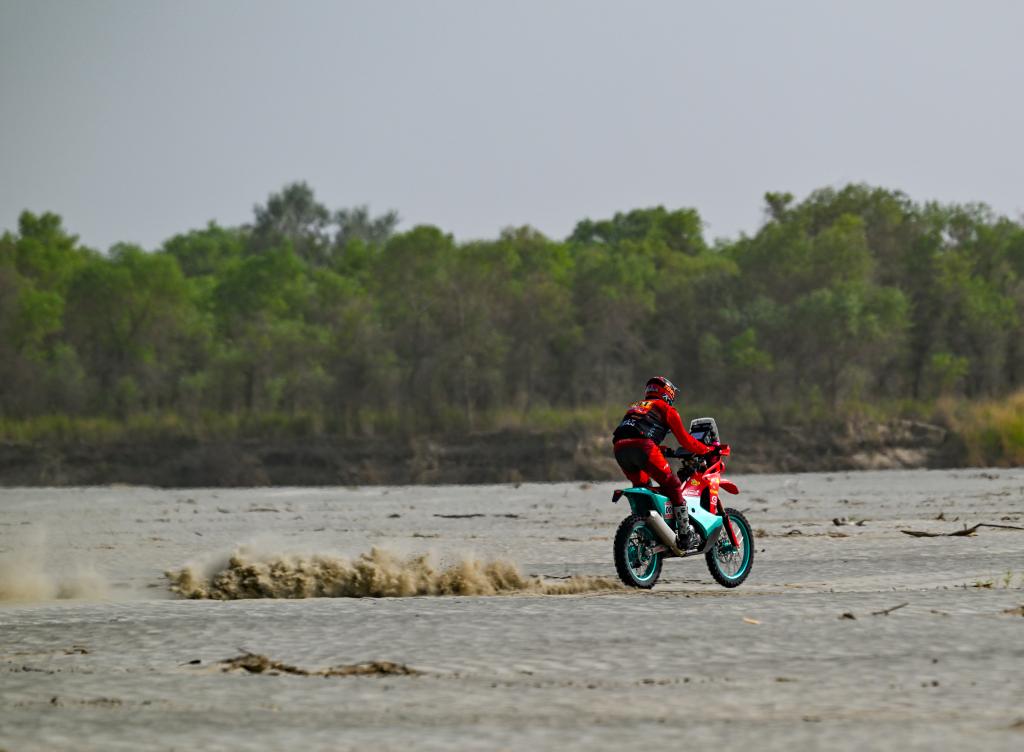 摩托车组方面,凯越机车越野车队车手邓连松率先完赛,他的队友内尔斯·泰里克随后到达终点。这名法国车手透露,自己平时在法国的训练中大部分都是类似的高速赛段,因而会比诸多中国车手更加适应节奏。