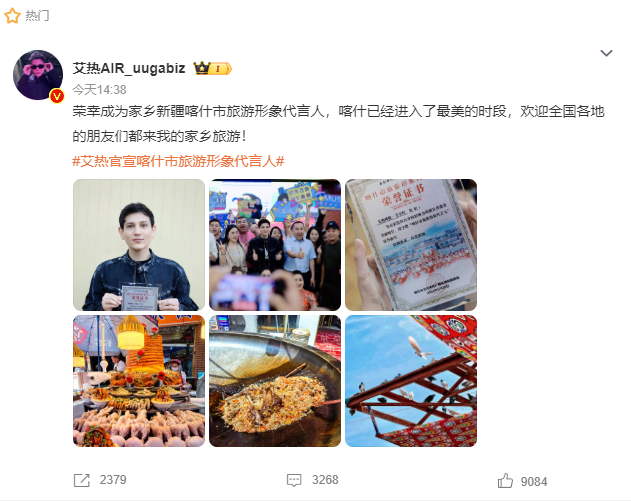 官宣后,艾热的代言人身份得到了粉丝和网友的广泛认可,他将以歌手的身份为喀什旅游业增添了艺术光彩,吸引游客探索喀什的美丽和活力。