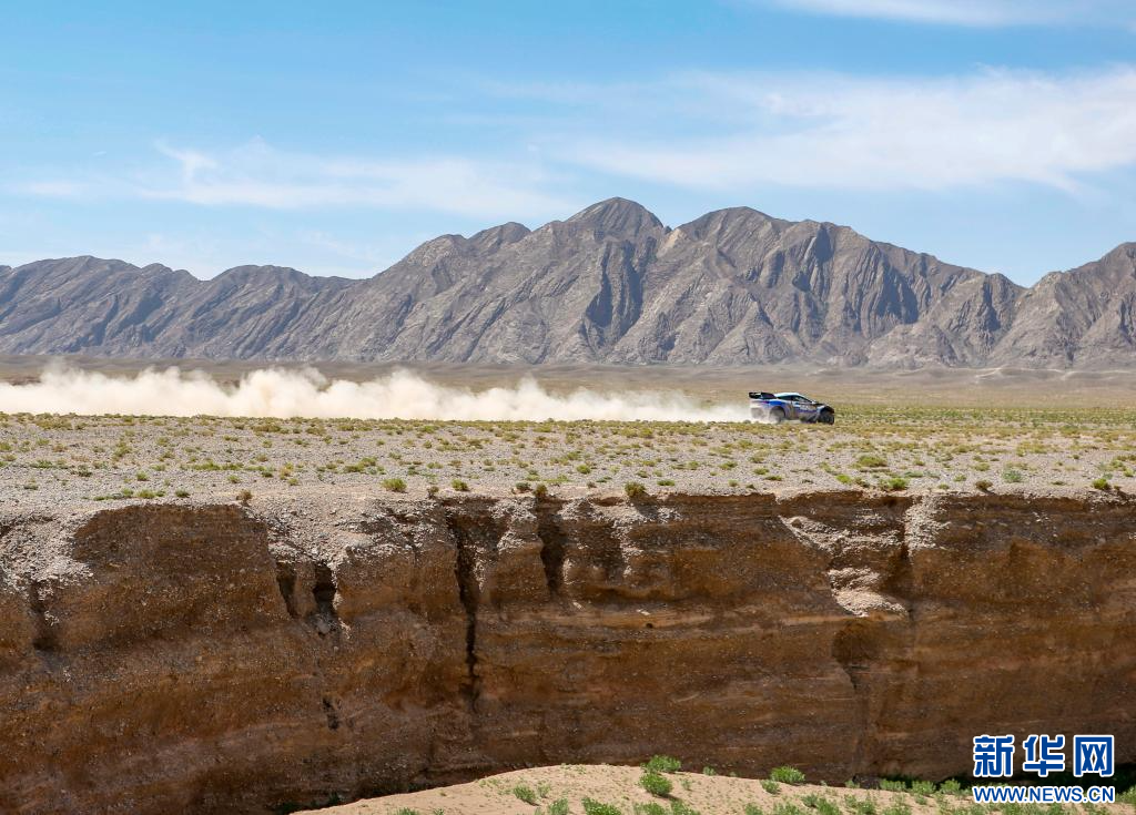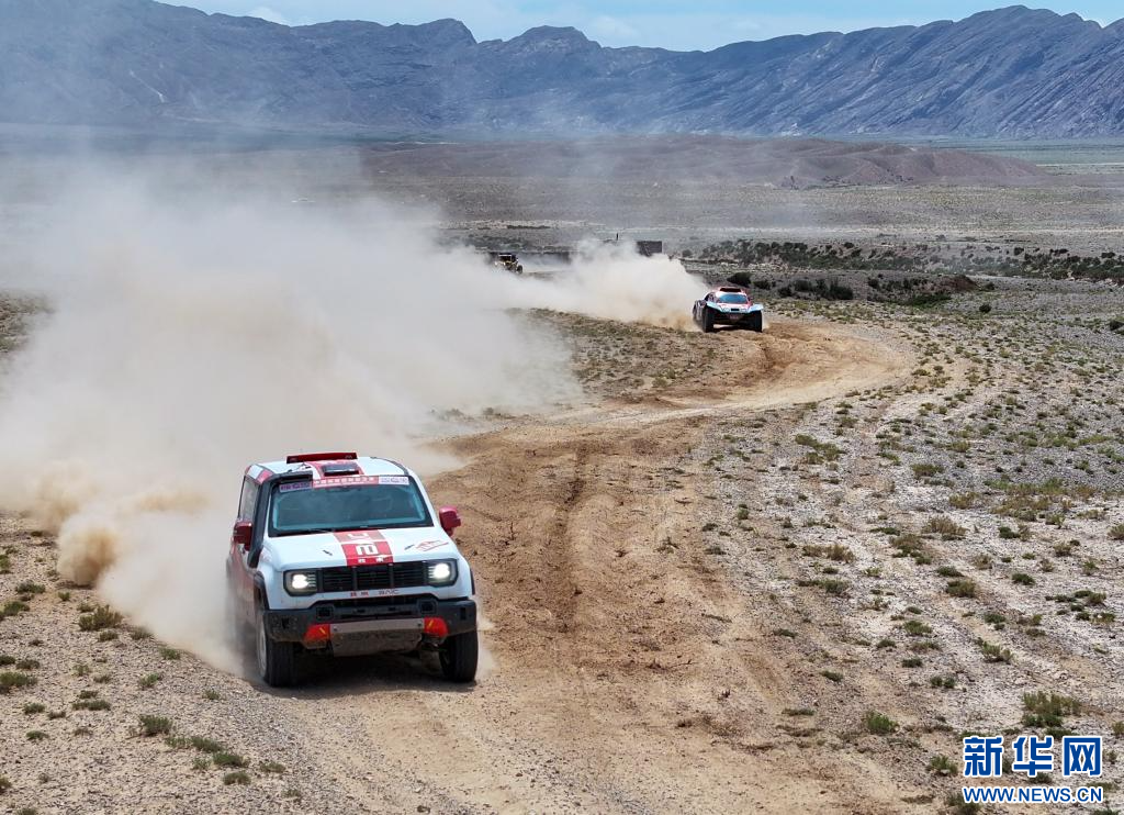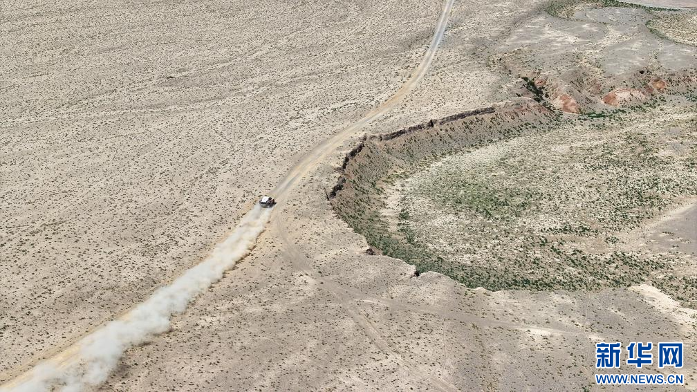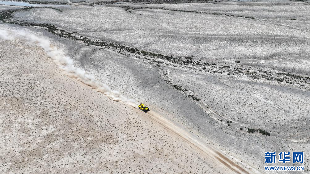 5月30日,韩魏汽车运动队中国车手乔晓华、领航员吴奇在比赛中(无人机照片)。新华社记者 陈朔 摄
