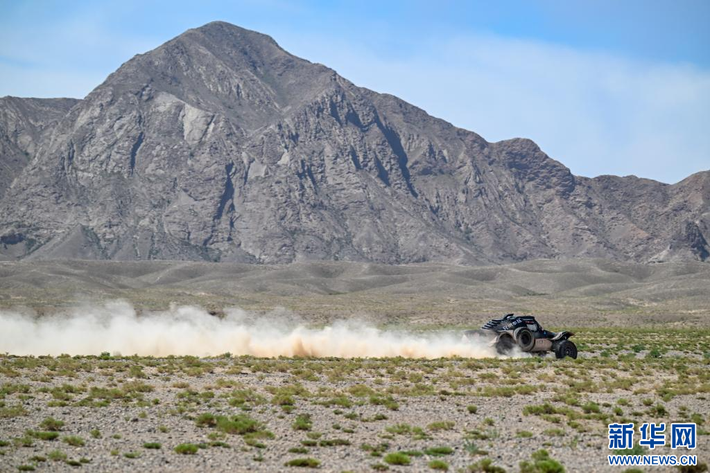 5月30日,新疆八一钢铁车队中国车手张天化、领航员连俊杰驾驶赛车在比赛中。新华社记者 陈朔 摄