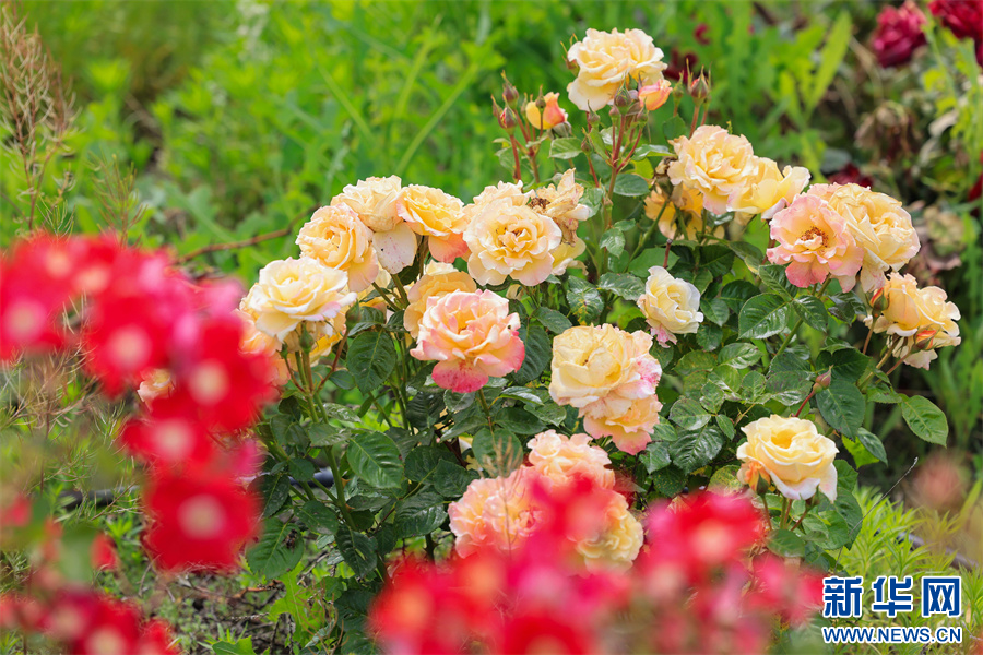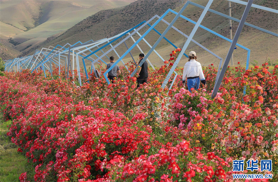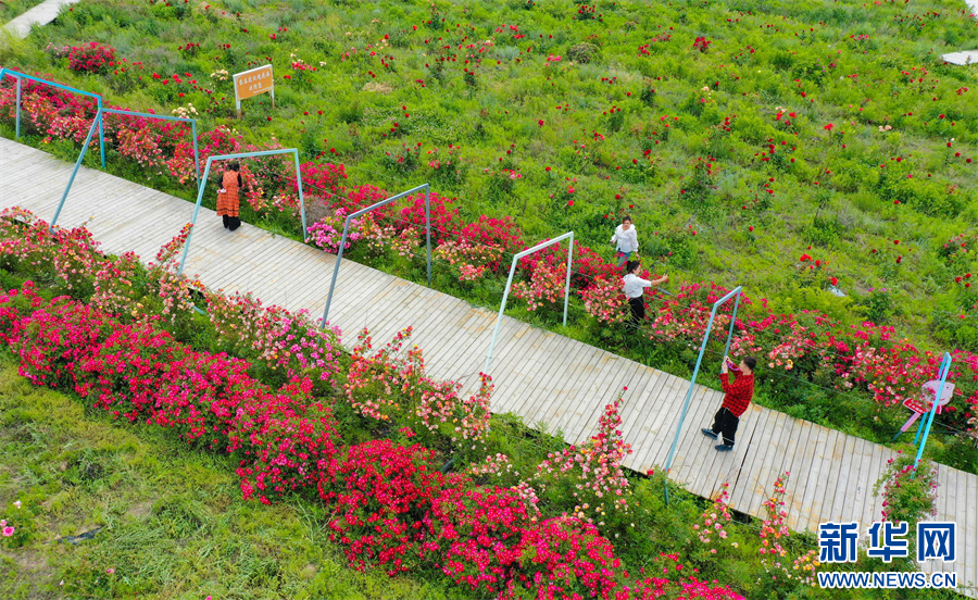 5月30日,位于新疆新源县喀拉布拉镇的千亩玫瑰小镇观光园中各种玫瑰,竞相绽放,散发出醉人的芬芳,令人心旷神怡。游客纷纷走进花海,漫步在玫瑰花丛中,或闻着花香,或玩起自拍,陶醉在馥郁花香中。