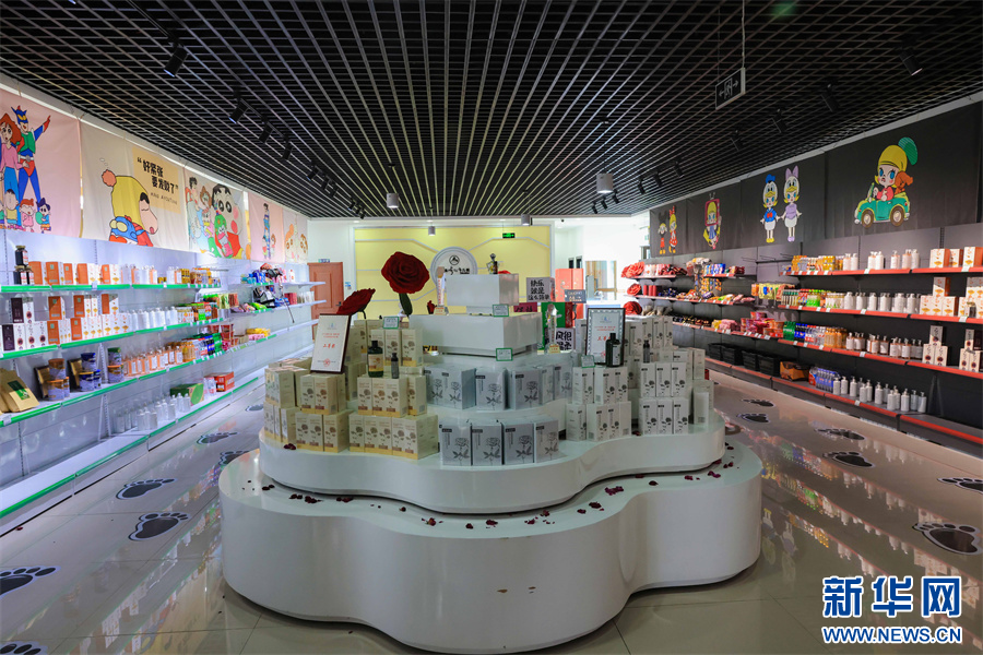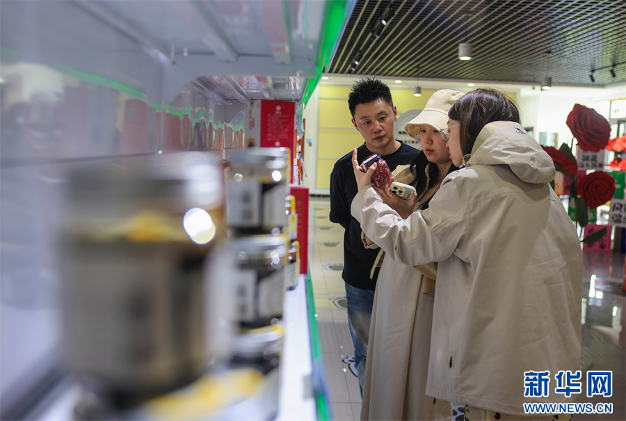 游客在玫瑰产品展销中心购买玫瑰产品。
