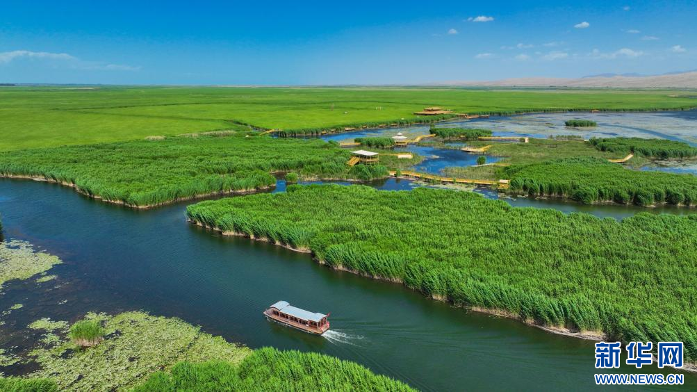 进入夏季,位于新疆巴音郭楞蒙古自治州博湖县境内的博斯腾湖迎来旅游旺季。在博斯腾湖莲海世界景区,8万亩野生睡莲竞相绽放,朵朵绽放的睡莲与碧蓝的湖面、起伏的沙丘、连片的芦苇交相辉映,融江南秀色与塞外壮美于一体,游客乘船荡漾其间,呈现出一幅“船在湖中行,人在画中游”的生态画卷。