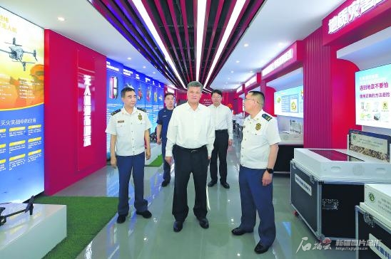 6月12日,自治区党委书记马兴瑞走访调研有关中央驻疆单位。这是马兴瑞在新疆森林消防总队,详细了解队伍改革转制和各项工作开展情况。 □石榴云/新疆日报记者崔志坚摄