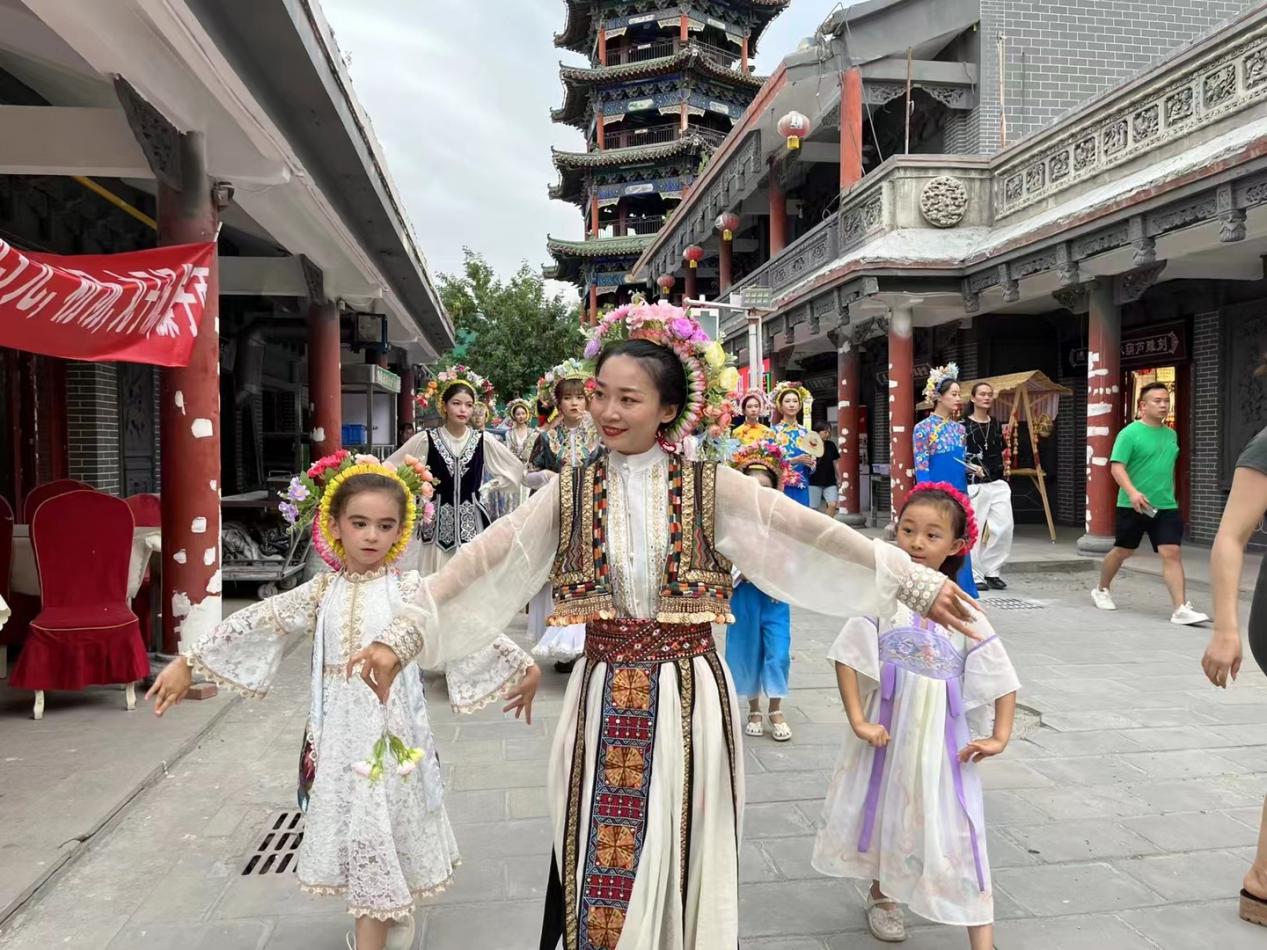 6月12日,2024“泉昌情深·多彩非遗”戏曲展演暨簪花文化交流活动在昌吉小吃街启动并举行首场演出。