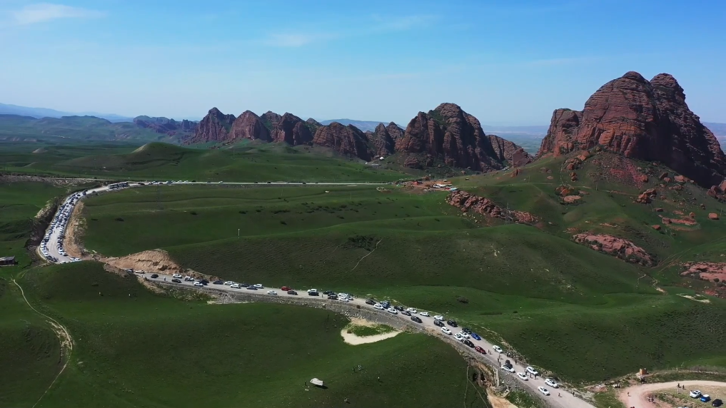 盛夏时节,位于新疆玛纳斯县境内的天山北麓绿意盎然,壮美的雅丹地貌与草原、林海、湖泊交相辉映,俨然一幅动人画卷。总长300多公里的新疆网红公路省道101线,集雅丹、丹霞、戈壁、河谷、峡谷、高山草甸、森林等不同地形地貌和自然风光为一体,壮美景色吸引各地游客前来观光打卡。