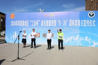6月26日,在第37个国际禁毒日当天,阿勒泰地区禁毒委联合阿勒泰地区总工会、阿勒泰地区文旅局、阿勒泰市政府共同开展“2024年阿勒泰地区城市健康跑暨'6·26'国际禁毒日宣传”活动,700余名跑步爱好者统一身着印有禁毒元素的运动短袖,为禁毒宣传炙热开跑,共同营造浓厚的禁毒宣传氛围。