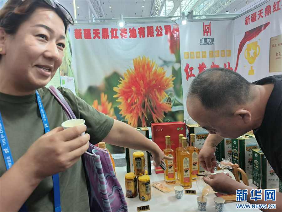 6月26日,第八届中国—亚欧博览会在新疆乌鲁木齐举办,参展商们纷纷亮出自家招牌特色产品,吸引了众多客商、市民前来咨询、选购。