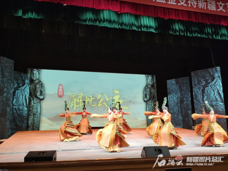 歌舞演员表演《解忧公主》的经典选段。双河市职工文化艺术名师名家工作室供图