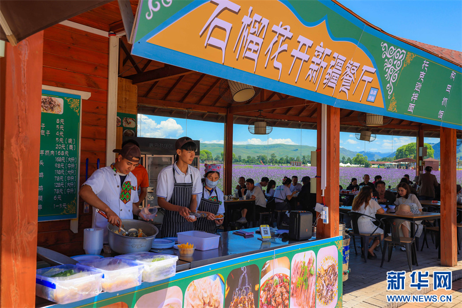 据了解,花海那拉提景区建成于2017年,总投资1亿多元,占地面积2000余亩,种植各类花卉70余种。该景区被评为“国家AAA级旅游风景区”“国家农村产业融合示范园”“自治区休闲农业示范园”“自治区旅游服务业标准化示范园区”等。景区由精品花卉种植区、特色美食餐饮区、游乐场所等七个功能区组成,帮助当地群众232户近1500人就业。另外,暑期旺季还吸纳了返乡大学生、高中毕生和当地临时用工500多人。