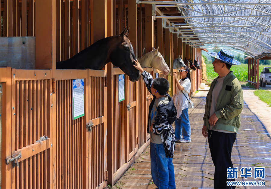 7月3日,游客在花海那拉提景区内观赏汗血宝马。